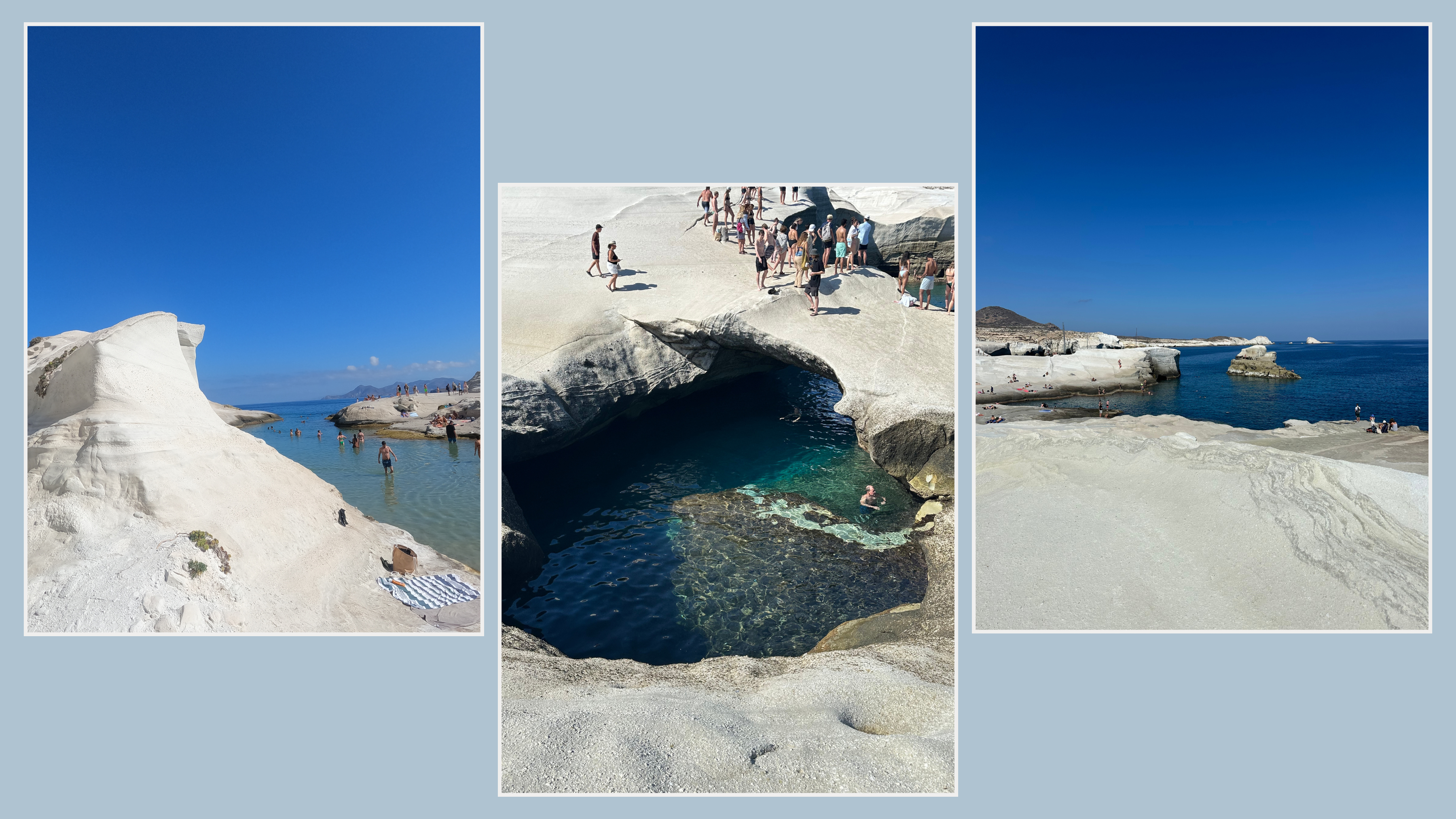 We spent most of our time here beach hopping, and it easily became our favorite part of the island. Whether you want to relax, explore, swim, or cliff jump, Milos has a beach for you.