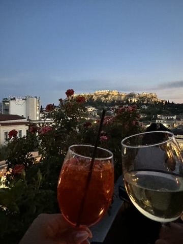 After cooking, we enjoyed everything together during a rooftop dinner with views of the Acropolis. The setting was incredible, especially as the sun set and the city began to light up.