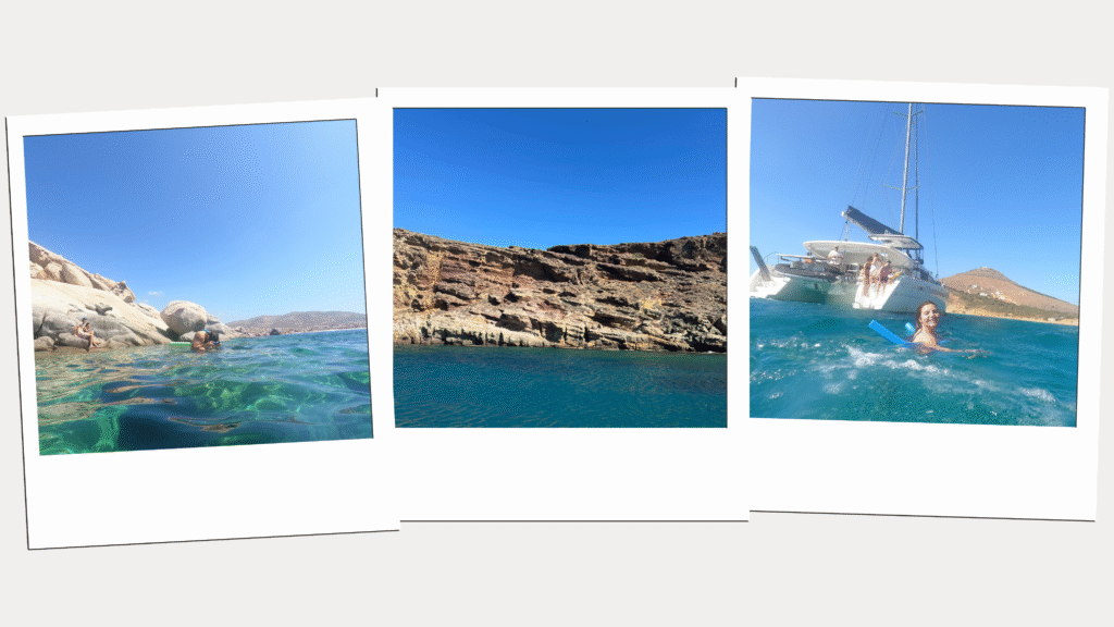An all-inclusive catamaran cruise is one of the best ways to experience Naxos from the water. Expect swimming stops, crystal-clear bays, lunch, snacks, and drinks, all with minimal effort on your part. We had so much fun swimming in the Aegean Sea and exploring the island from the water. The water is cold, but it’s totally worth it! You can book the same tour we did on Viator.